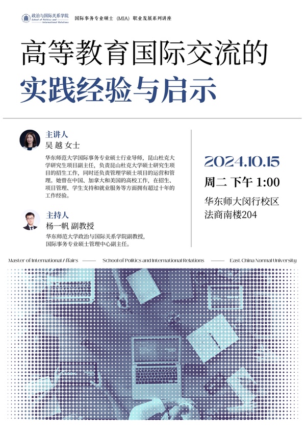 活动预告|「国际事务专业硕士(MIA)职业发展系列讲座」吴越:高等教育国际交流的实践经验与启示