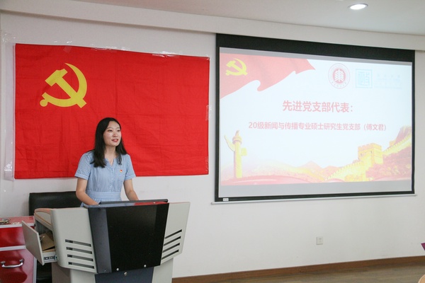 随后,杨一帆同志与傅文君同志分别作为优秀党员代表和先进基层党支部代表进行了交流发言。杨一帆同志从自己的入党初心谈起,结合今日的毕业典礼以及我国神舟十二号载人飞船成功发射的时事背景,勉励各位党员要戒骄戒躁,踏实进步,不断为学校、为国家、为人民作出更大贡献。傅文君同志则立足于过去一年扎实的支部工作,在深刻总结支部建设特色和经验的基础上,向全体与会支部书记分享了加强支部建设的心得和体会。