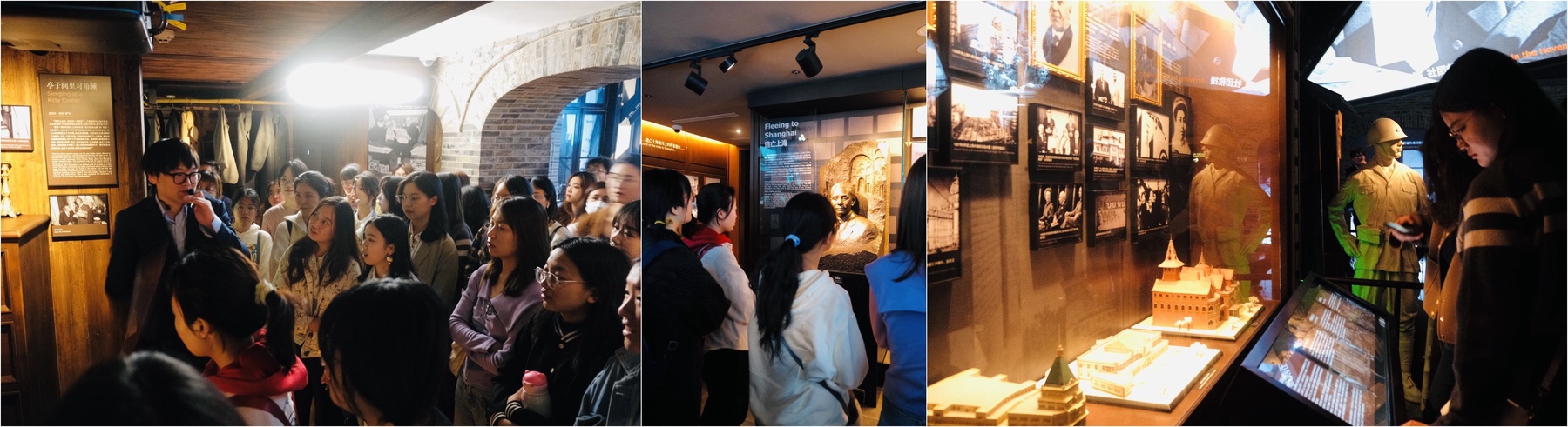 在馆内讲解员的引导和介绍下,同学们了解到上世纪三四十年代,约两万名欧洲犹太人在纳粹德国的迫害下避难上海虹口的历史。展览区内,不仅有对犹太难民生活场景的真实还原,还有对当事人的回忆、采访等视频的展播,再现了上海人民对犹太难民施以援手,两方人民互帮互助的温馨故事。大家仿佛穿越时空,身临其境目睹了犹太难民在逃亡岁月中艰难谋生、中国人民雪中送炭的历史记忆和难忘情谊。纪念馆内展陈的诸多珍贵的物品,既承载了他们主人曾经的辛酸与血泪,更见证了中国人民与犹太民族同舟共济、苦乐与共的患难真情。