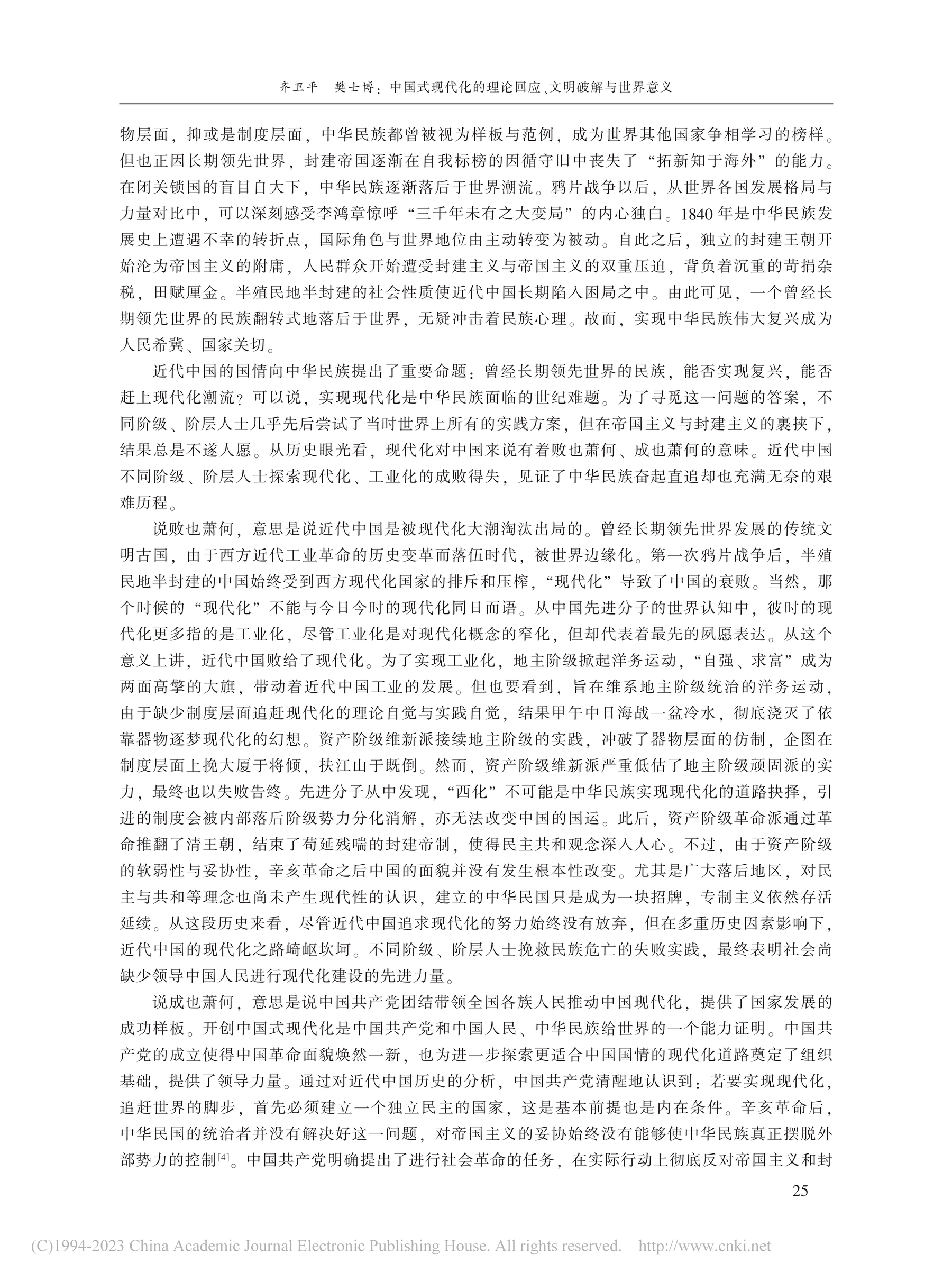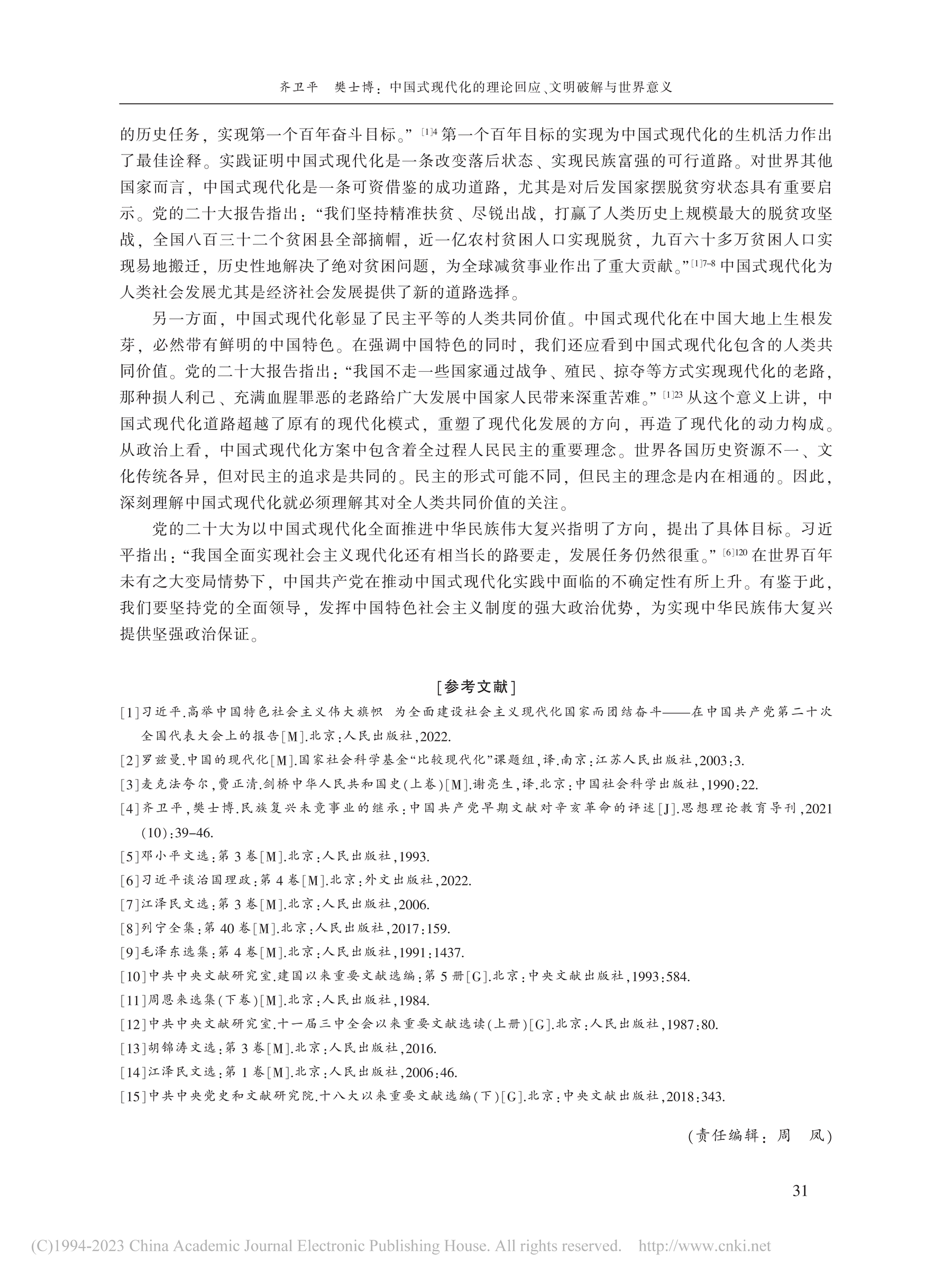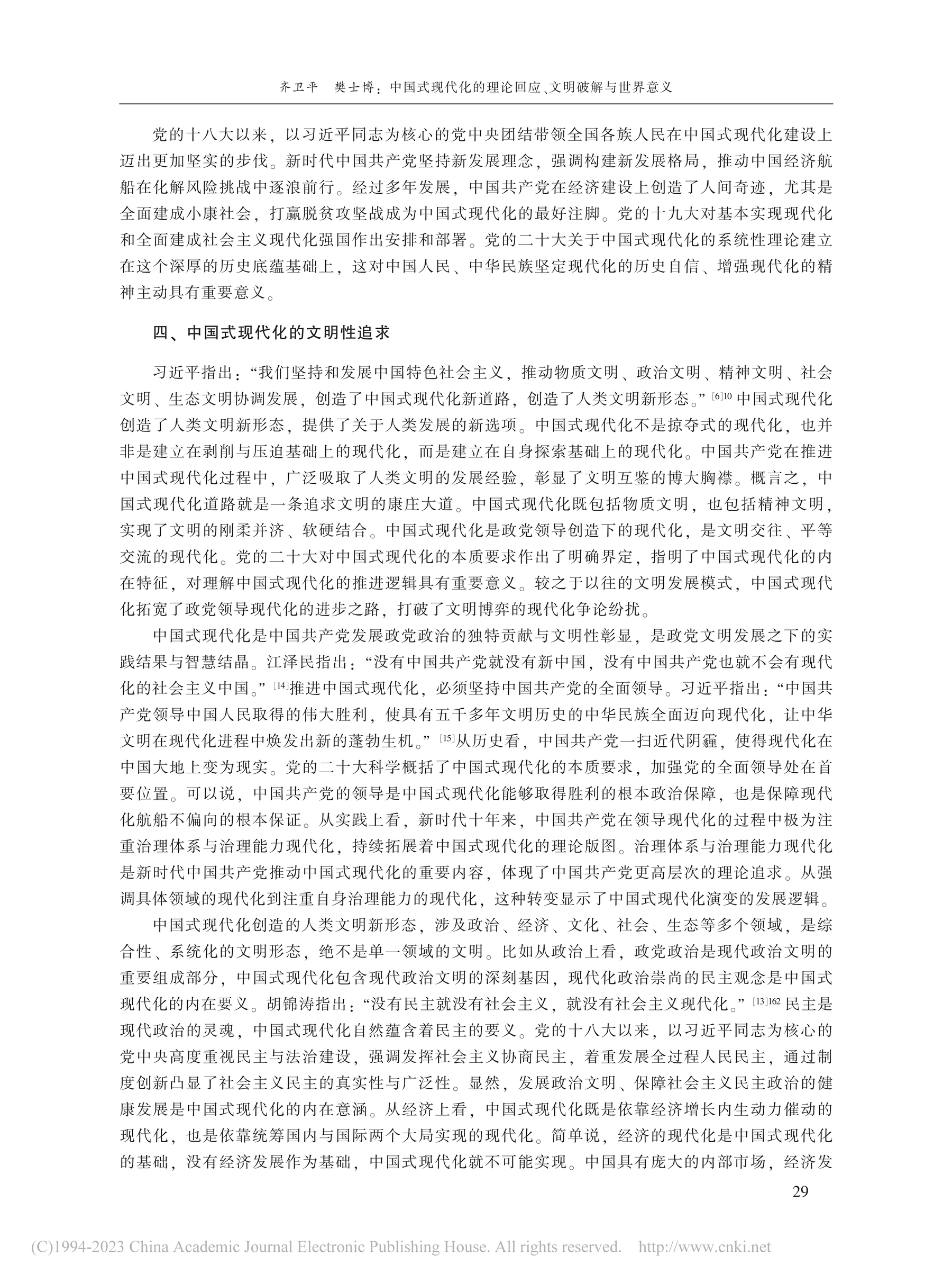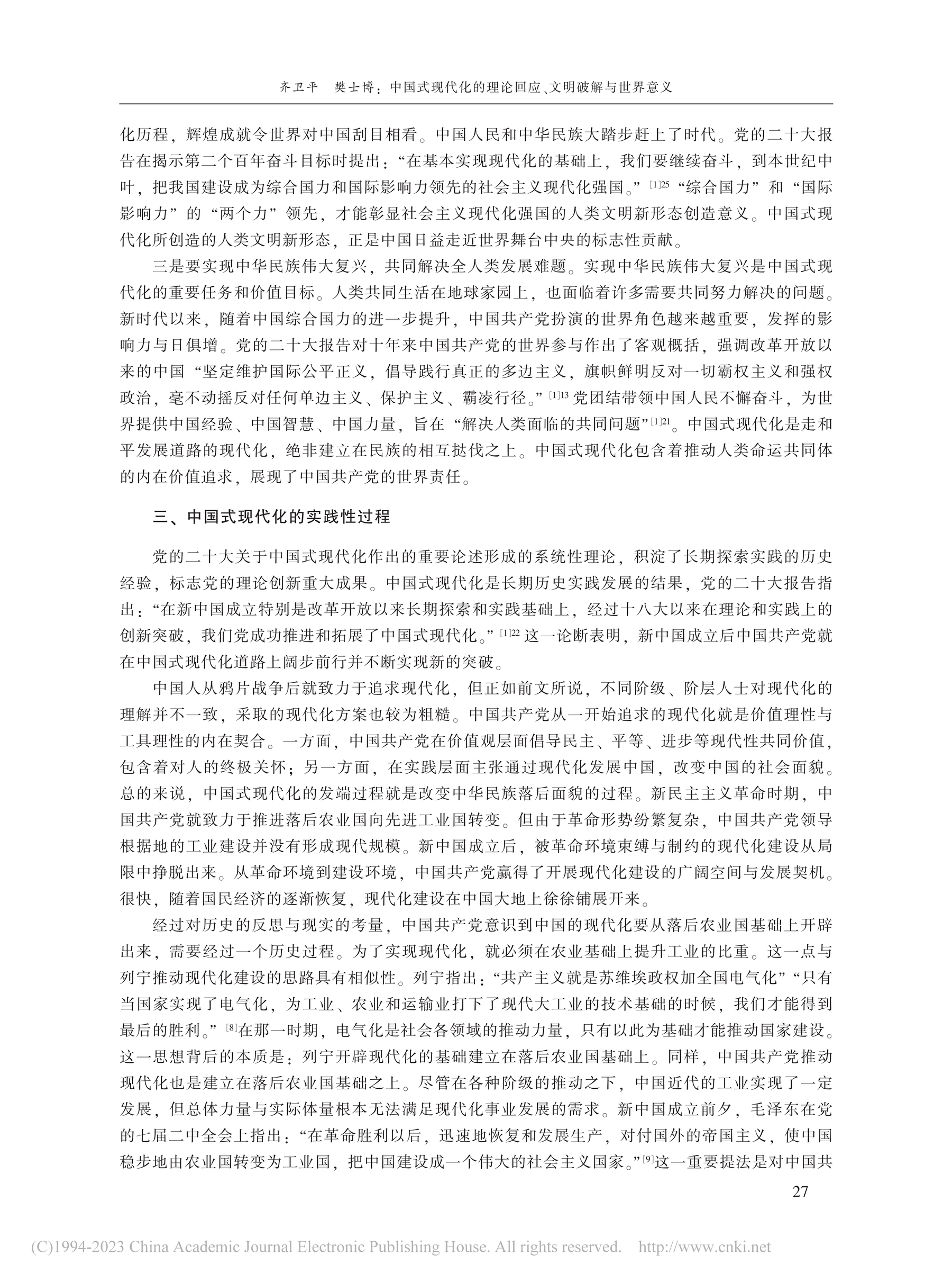 院友之声|齐卫平、樊士博:中国式现代化的理论回应、文明破解与世界意义