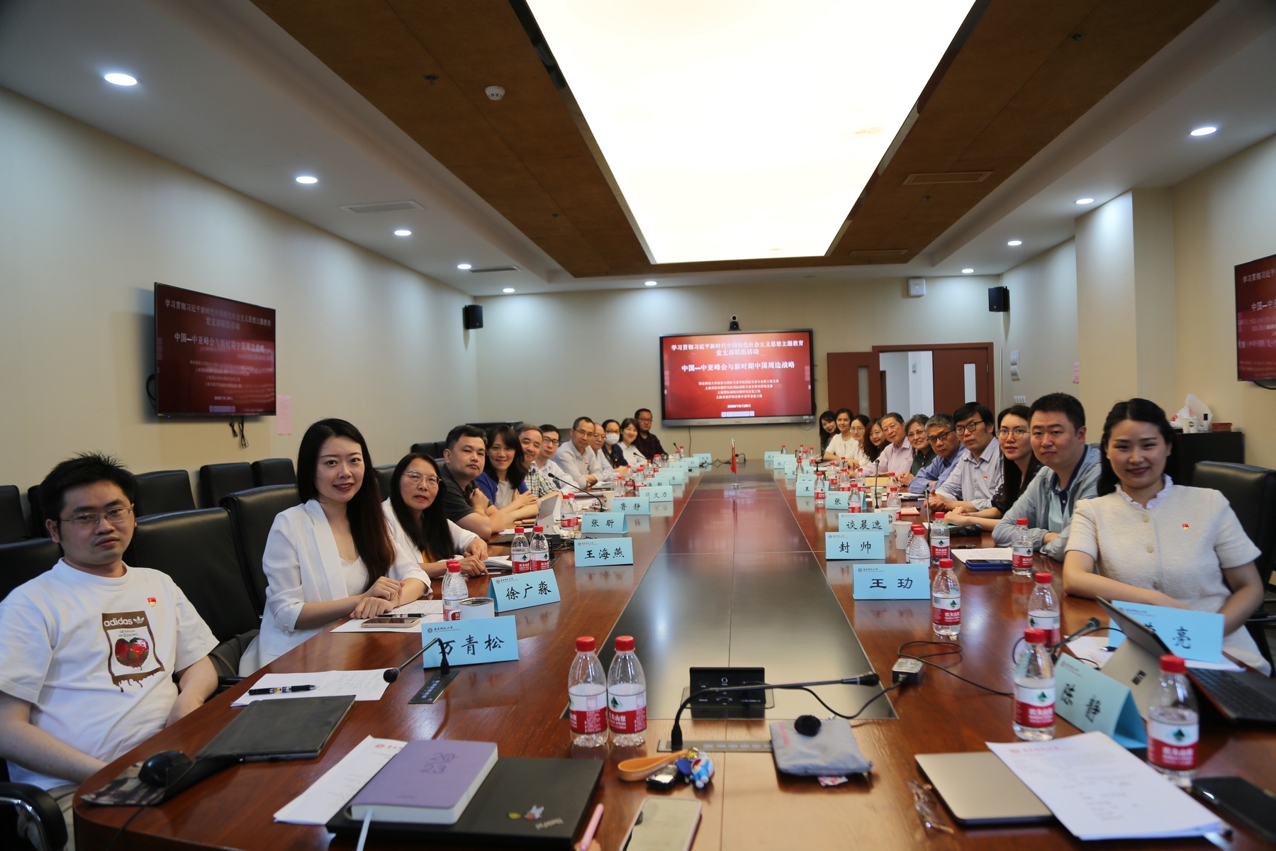 为深入开展学习贯彻习近平新时代中国特色社会主义思想主题教育,2023年5月29日上午,脱衣舞 国际关系专业教工党支部、上海国际问题研究院国际战略与安全研究所党支部、上海国际战略问题研究会党工组、上海市俄罗斯东欧中亚学会党工组四单位基层党组织在脱衣舞 普陀校区理科大楼A416室联合举办主题教育联组活动,研讨“中国—中亚峰会与新时期中国周边战略”。联办单位党组织的20余名党员师生与相关专家一起学习研讨。