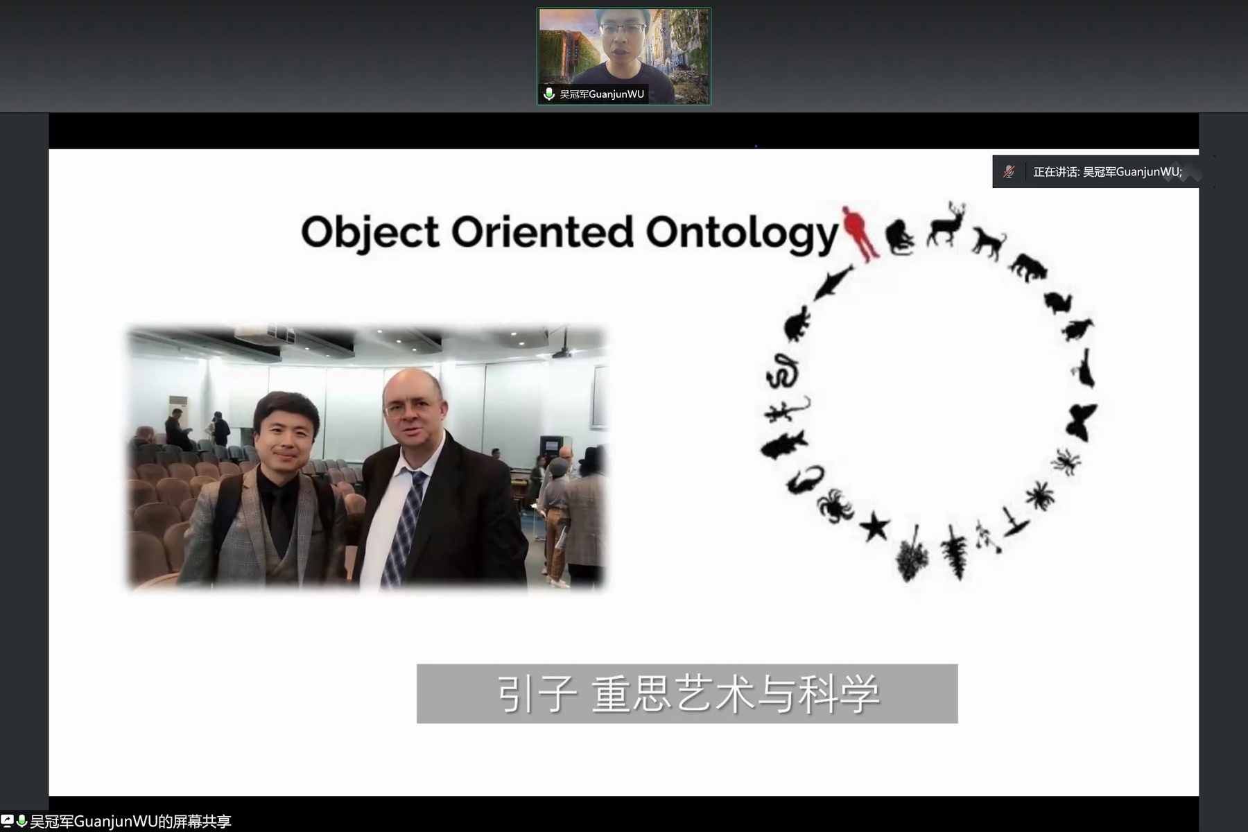 作为国家社科重大项目《后现代注意哲学发展路径与新进展研究》的首席专家,吴冠军介绍到,3“O”理论(Obiect-Oriented Ontology)即对象导向的本体论,是其好友哈曼在其博士论文中提出的理论,它重新界定了人与很多其他我们所熟悉东西的关系。比如说,艺术和美学与科学之间的关系。3“O”理论提出艺术和美学是科学的基础。这与我们一般的认知有所矛盾,从一般来看,人们始终都认为科学才是最根本的。但吴冠军分析到一切的实体都是人将其变为对象的,然而所有的东西都有一个“撤回(withdraw)”的特性,内在的拒绝、抵抗。从这一角度而言,无论科学如何用力,最后物的世界都有一块不会落入到科学之中。从这一意义上讲,科学所做的努力反而成为了艺术、美学的一个门类,成为人们众多感受中的一种。